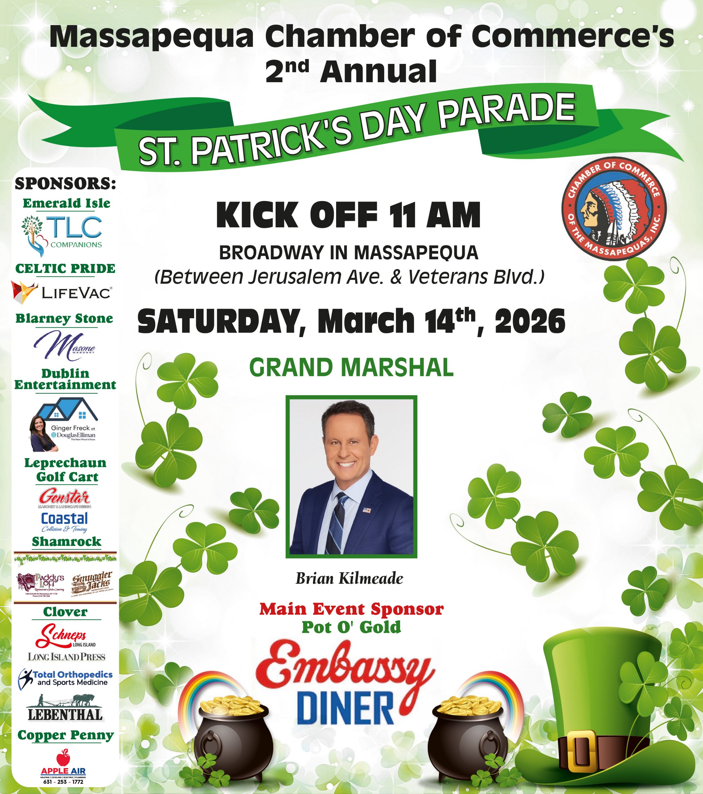 The Massapequa community is getting ready to celebrate Irish pride and local spirit at the Massapequa Chamber of Commerce’s 2nd Annual St. Patrick’s Day Parade, taking place on Saturday, March 14, 2026.